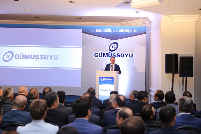 Gümüşsuyu Halı Genel Müdürü Dr. Gökmen Kara basın toplantısında markaya ilişkin bir sunum gerçekleştirerek ‘Türkiye’nin ilk makine halısı Gümüşsuyu, Erciyes Anadolu Holding’in güçlü teknolojisi ve üretim alt yapısıyla uzman ellerde yeniden doğuyor. Grubumuz, faaliyet gösterdiği tüm sektörlerde lider markalar oluşturma amacı taşımaktadır. Erciyes Anadolu Holding, bu özelliğini halı sektöründe de Gümüşsuyu markasını zirveye taşıyarak ortaya koyacaktır. Halihazırda asırlık marka olma yolunda halı sektöründeki ilk aday olan Gümüşsuyu’nu 100. yılında hak ettiği seviyeye ulaştırmak hedeflerimiz arasında. Ayrıca, global bir marka olma yolunda da tüm çalışmalarımızı şekillendirmekteyiz. Bu bağlamda, geçen hafta Gümüşsuyu olarak katıldığımız Çin’deki uluslararası halı fuarı bir başlangıç olmak üzere, 2020 yılında Almanya, İtalya, Çin gibi birçok farklı ülkede gerçekleştirilmesi planlanan sektör fuarlarına katılarak marka bilinirliğimizi artırmayı ve dünyada daha pek çok noktaya ulaşmayı hedefliyoruz.’ dedi.